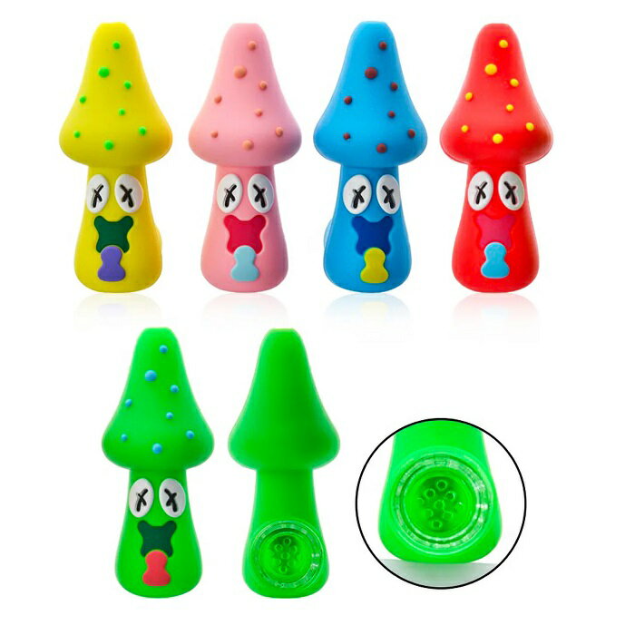 シリコン製 マッシュルームパイプ(ガラスボウル付き) - アソートカラー [ 115mm ] - Silicone Mushroom Pipe w/ Glass Bowl - Assorted Colors [ 115mm ]