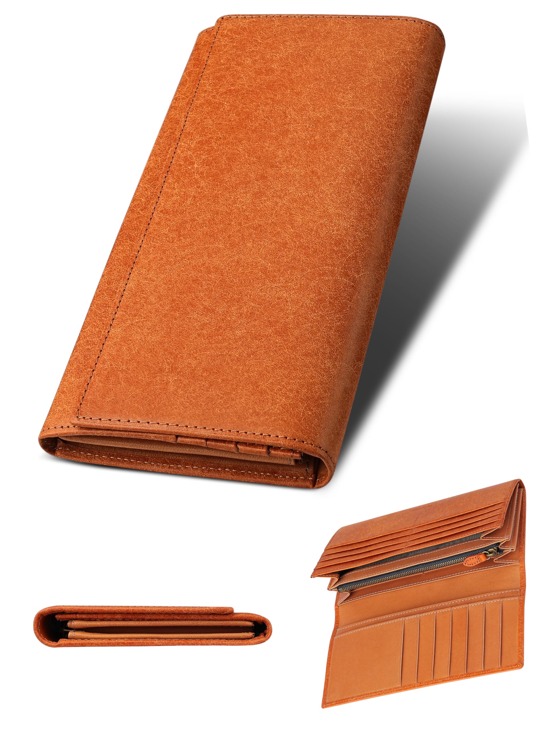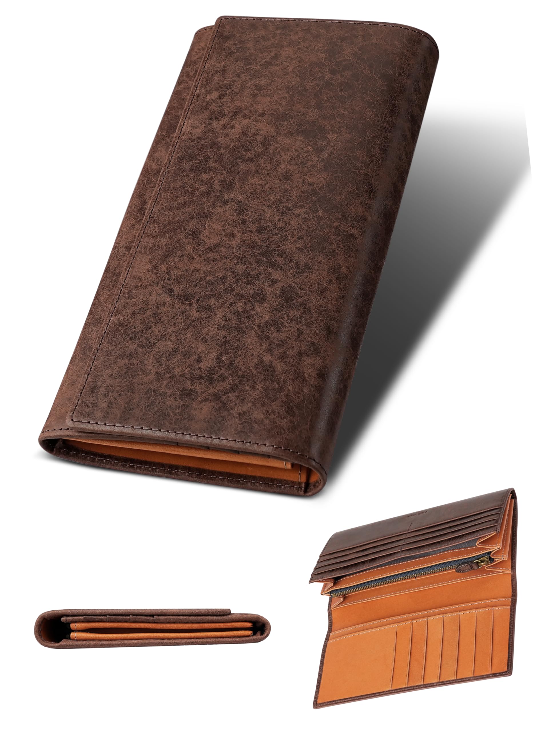 [ファブリツィオ] 財布 メンズ レディース 長財布 2つ折り マチ付き 小銭入れ 薄い 大容量 カード21枚 使いやすい イタリアン レザー 一流の革職人が作る 本革 YKKファスナー (タバコ)