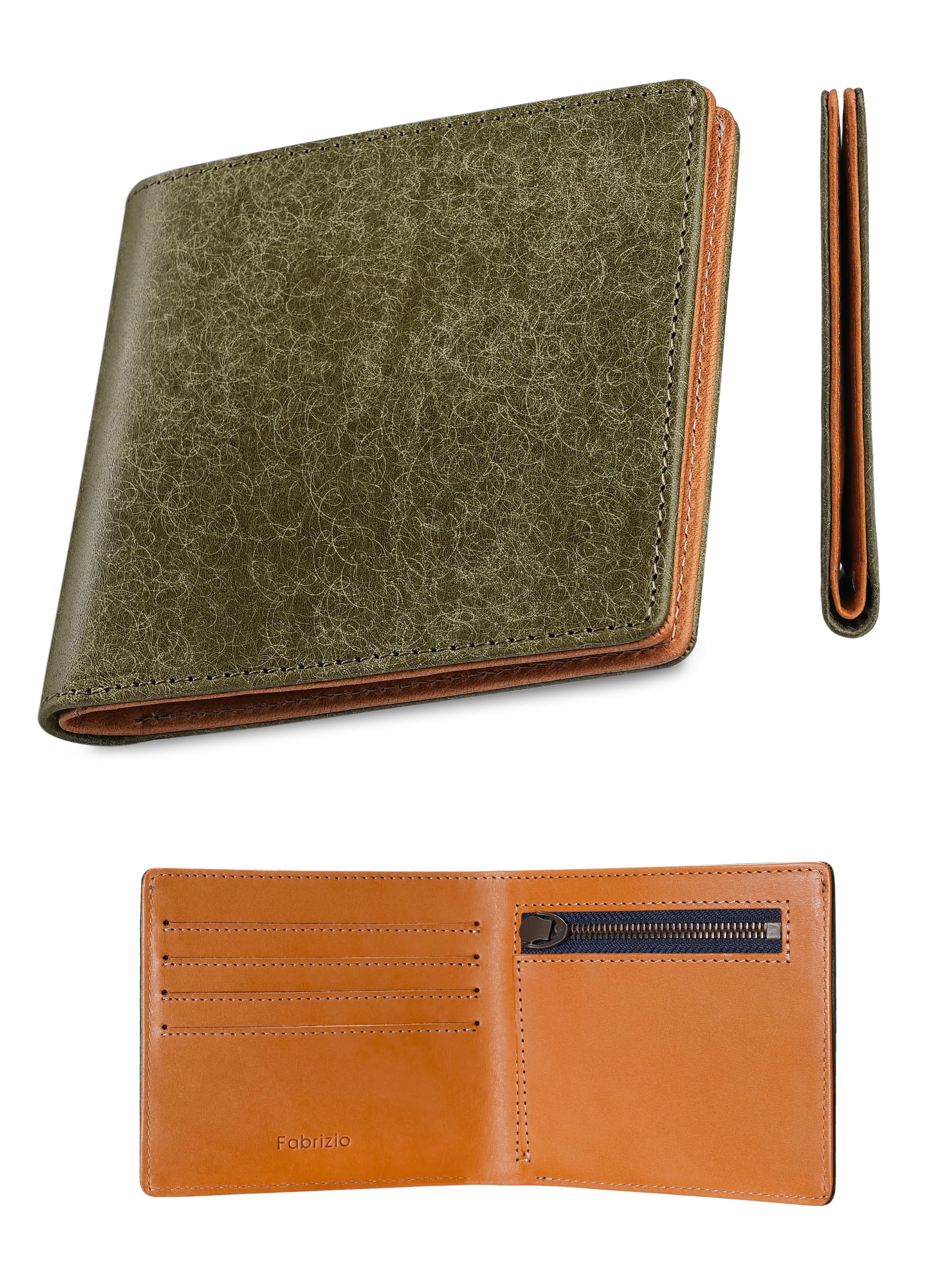 [ファブリツィオ] 極薄 財布 メンズ レディース 2つ折り 薄い 小銭入れ 使いやすい イタリアン レザー 一流の革職人が作る 本革 YKKファスナー (オリーバ)