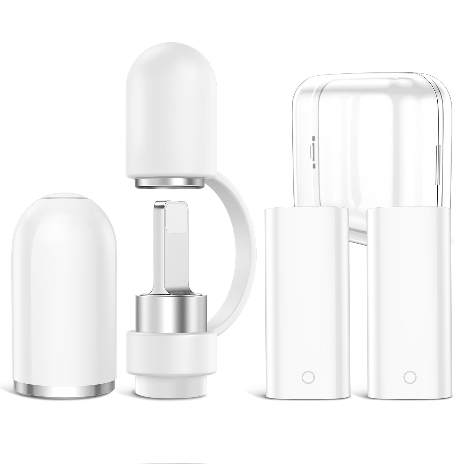 ・パッケージ内容:対応 Apple Pencil交換 キャップ*2+キャップホルダー*2(4点セット)。Apple Pencil第1世代のみ対応。・純正と同じマグネット吸着力:純正と遜色ないの磁気デザイン、ホワイトの色味は純正と同等のように思います。大きさ、素材感、内側の金属の具合、磁力など、ほぼ純正と同様であり、iPencilにしっかり吸着でき、強く振っても外れることはありませんでした。・対応 Apple pencil用キャップの紛失防止に:付属のキャップホルダーは、iPencil本体とキャップをぴったりがつなぎ、キャップの紛失を防ぎ、キャップを外した時に転がって何処かにいく心配もなく、Padにペンホルダーつけて持ち歩いているので大変重宝しています。・高品質素材:本社の交換用キャップは純正品に同じに質感と色合い、接着部分が面一で強力な磁石が内蔵、代用品にお勧め。同時に、キャップホルダーは柔らかくて人体にも環境にも無毒無害のシリコンで出来たので、高品質、スタイリッシュ、丈夫で、脱着することは便利で、Apple Pencilの本体にしっかりとつかみ、落ちないように守ります。・優れた互換性:第1世代の対応Apple Pencilキャップ交換用予備。(対応iPad Pro(12.9インチ)第2世代 第1世代/iPad Pro(10.5インチ)/iPad Pro(9.7インチ)/iPad Air第3世代/iPad第10世代/第9世代/第8世代/第7世代/第6世代/iPad mini第5世代対応 。