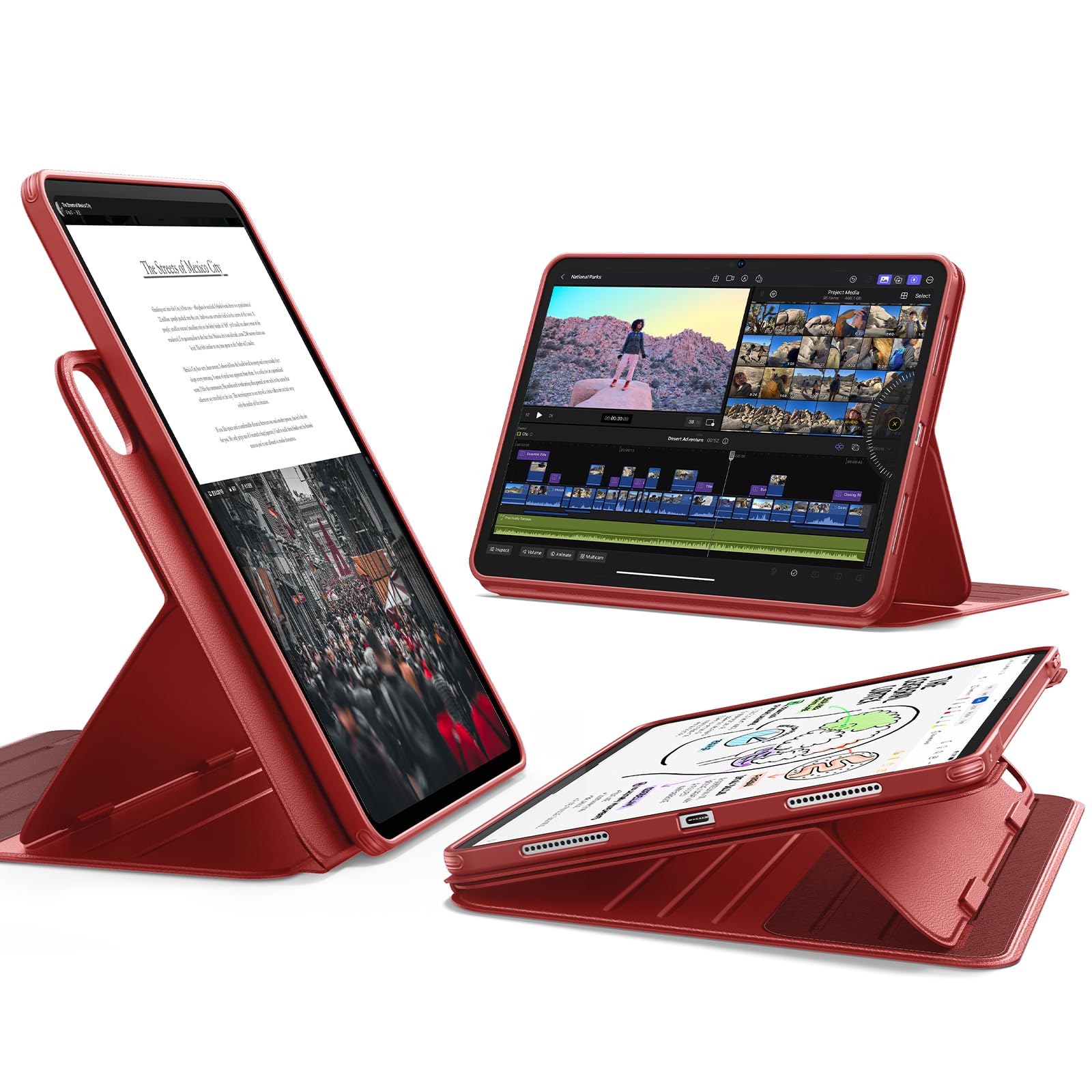 ESR iPad Pro 11インチ ケース(M5/M4、2025/2024)専用 取外し可能なマグネットカバー付き回転式ケース 縦向き/横向きスタンド 6段階の角度調節可能 Pencil Pro/USB-C対応 Shiftシリーズ レッド