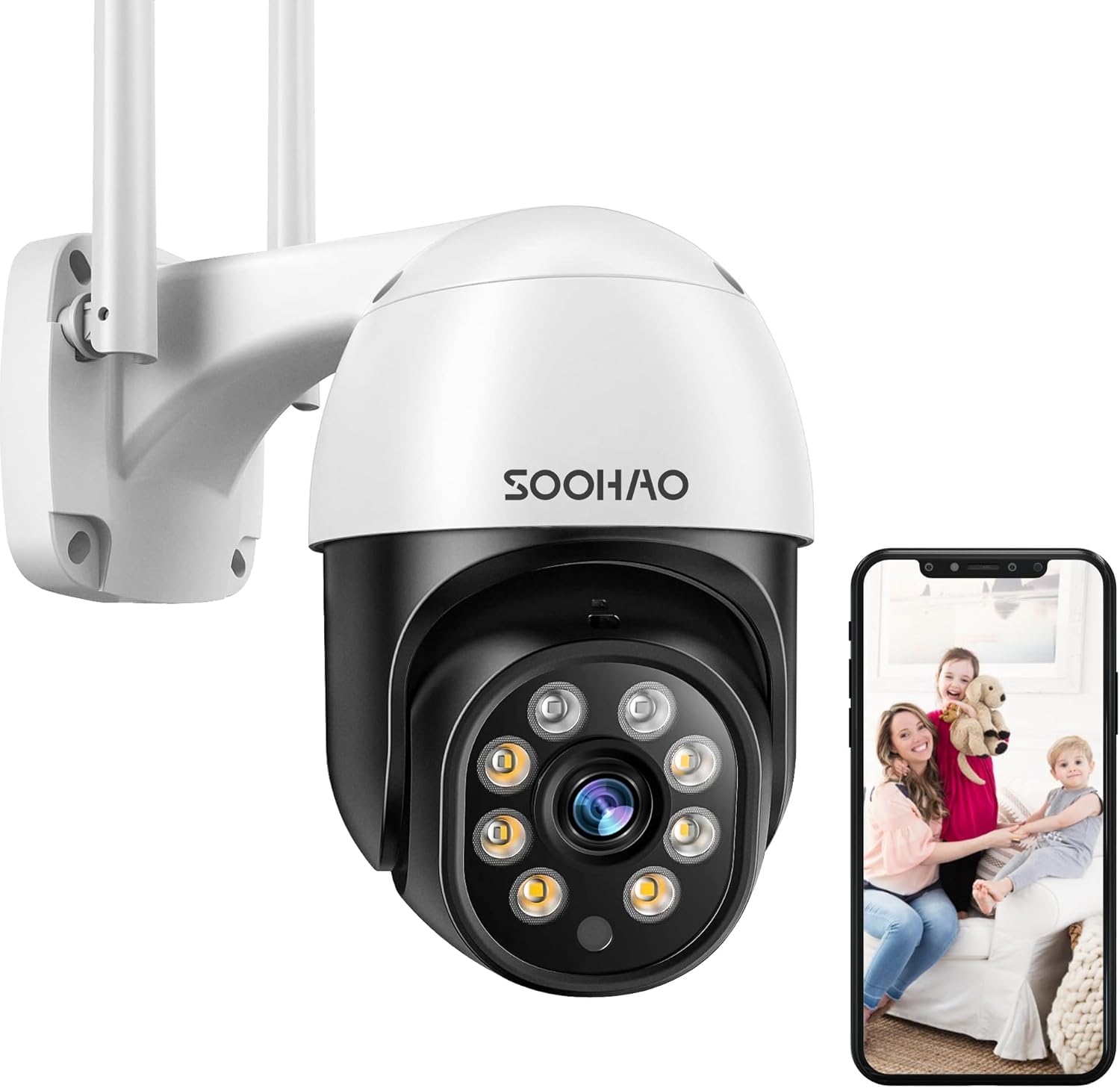 SOOHAO 防犯カメラ ワイヤレス wifi 2K500万画素 PTZ機能 防水 24時間常時録画対応 360度広角撮影 音声アラーム 双方向通話 Alexa対応 監視カメラ 無線 カラー暗視 動体検知機能 スマホ連動 AI人体検出 遠隔監視 取り付け簡