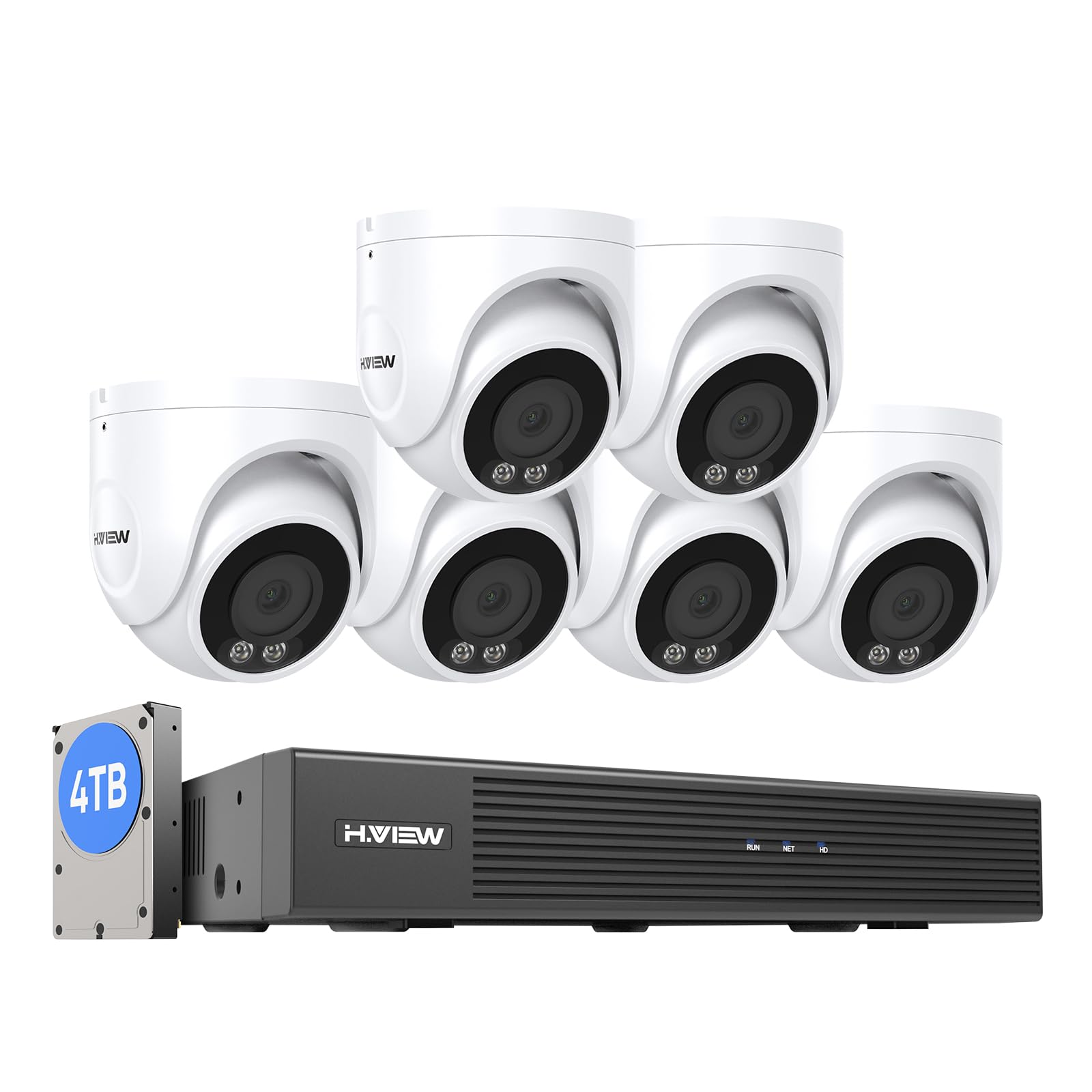 【4K画質・フルカラー撮影】H.View ドーム型 防犯カメラ 6台セット 800万画素 有線 カラー暗視 POE給電カメラ 8ch H.265 4Kレコーダー 8台まで増設可 音声録画 AI検知機能 IP67防水防塵 WDR技術 24/7フルカラー 遠隔