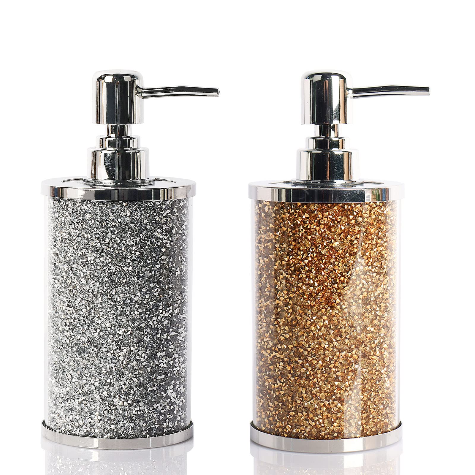 GHDVOP クリスタルガラス ソープディスペンサー 防錆プラスチックポンプ付き 12オンス モダン装飾 ガラスローションボトル 詰め替え可能 ローションディスペンサー キラキララインストーン付き バスルーム カウンタートップ ホームデコレーション用 (ゴ