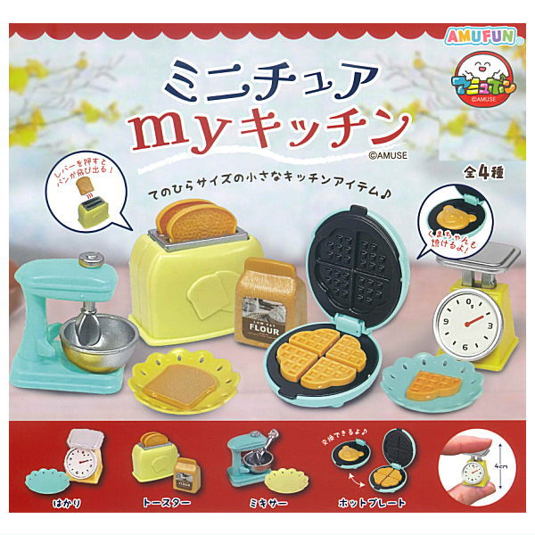 ●この商品のラインナップを全て見る ▼この商品は【全4種セット(フルコンプ)】です。 手のひらサイズの小さなキッチンフィギュア! ワッフルやクマさん型のパンケーキを焼いてお菓子作り気分♪ お人形やぬいぐるみの写真撮影にも使えるよ! 英語名:Miniature My Kitchen Amuse Capsule Toy このシリーズには4種類のラインナップがあります。 お届け商品は、商品名及び画像のものになります。 ・はかり ・トースター ・ミキサー ・ホットプレート キャラクター:模型 サイズ:全長約20-40mm 材質:PS 商品状態:新品・ミニブック付属 ※カプセルは付属しません。内袋は未開封です。 ■52398 ■メーカー:アミューズ ■分類:ガチャガチャ ■code:20250613 ■JAN:4534943755100 ラッピング(プレゼント包装)についてはコチラ 関連アイテムをキーワードで検索!(C)AMUSE 備考 ブラインドボックス※1の商品は内容物確認のため、箱の底を開封しておりますが、中袋は未開封です。発送時には商品の入っていた箱はお付けいたします。 ガチャガチャ(ガシャポン)のカプセルフィギュアは、カプセルを取り除き、小袋に商品を入れなおしてお届けいたします。ミニブックは付属いたします。 いずれの商品も新品、未組み立て、中袋未開封となっております。 また、食玩(食品玩具)に付属しているラムネ、ガム、チョコレートなどは賞味期限の関係でお付けしておりません。 ※1 外からでは何が入っているかわからない仕様の物