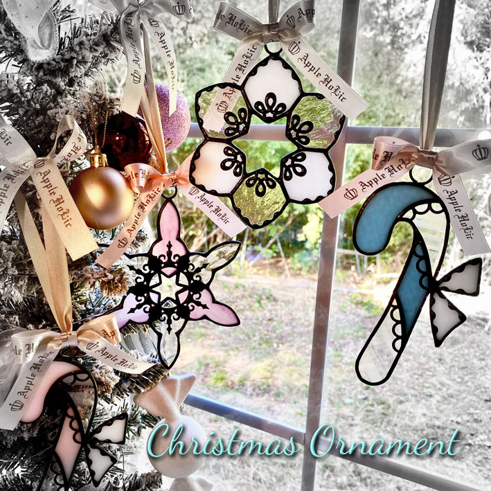 作家 ハンドメイド 【 クリスマス オーナメント 01 】 ガラス ステンドグラス 星 ディスプレイ 小物 飾り Witche's Kitchen