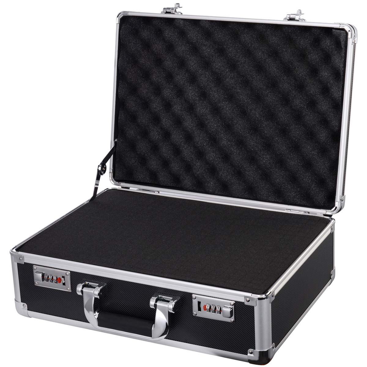 Rxakudedo アタッシュケース アルミ 大型 アルミツールケース ブロッククッション付き ブラック パスワードボッ クス 銀 長さ50×幅38cm