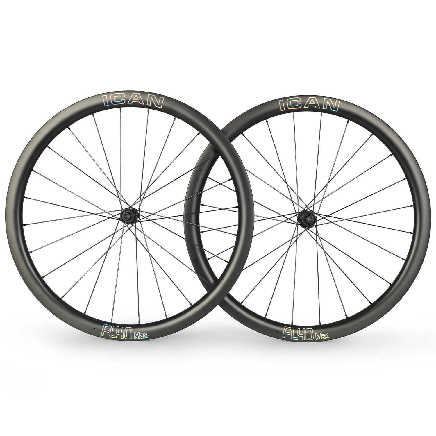ICAN FL MAXロードカーボンホイール700Cワイドリムディスクブレーキ仕様クリンチャーチューブレス対応 自転車ホイール軽量頑丈両立 リム内幅23mm (FL 40 MAX)
