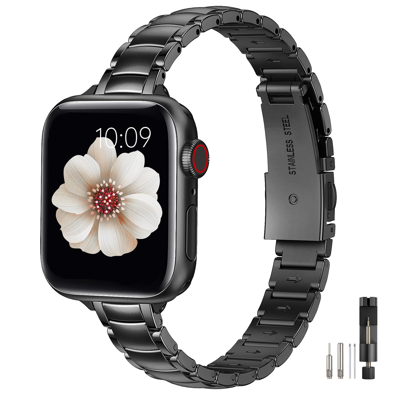 [MioHHR] 超細おしゃれな 対応アップルウォッチ バンド レディース 49mm 46mm 45mm 44mm 42mm(Series 3/2/1)、シンプルで上品、簡単な調整、コンパチブル Apple Watch バンド ステンレス、対応 Apple