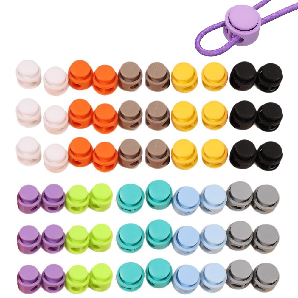 [YFFSFDC] 約50個入り カラフル コードストッパー 2穴 コードロック スプリング 紐止め ゴム調整バックル アウトドア 衣類 帽子 靴ひも 交換/補修用 留め具 DIY 手作り 素材