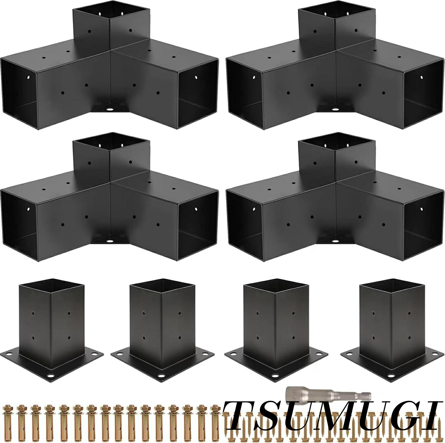 【まとめ買いで最大500円OFFクーポン!】【送料無料】ブラケット付き3ウェイ直角コーナーブラケット 木工DIYポストベースキット ガゼボ/パティオパーゴラ/ログキャビン用木製ビーム 屋外パーゴ金具 4x4の木材用 (8個パック)