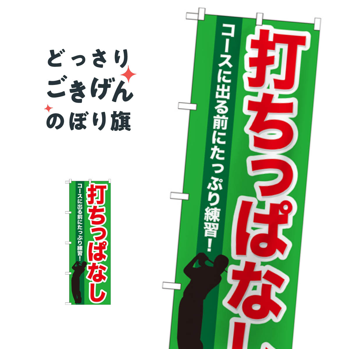 【 受注生産品のため印刷開始後のキャンセル不可 】 【 ポール・注水台は別途ご購入ください 】 【 サイズ 】 ・レギュラーのぼり 幅60cm×高さ180cm 一般的なサイズののぼりです。 ・ハーフのぼり 幅30cm×高さ90cm 狭い路地や商店街などで邪魔になりにくいサイズです。 ・ジャンボのぼり 幅90cm×高さ270cm 幹線道路沿いなどに設置するかなり大きめのサイズ。 ジャンボのぼりは:3,180円 ・ミニのぼり 幅30cm×高さ90cm 〇ポール付 店舗内の什器等に置いて商品を訴求するタイプ。 ※四隅は縫製ではなく切りっぱなし(ヒートカット)になります。 また、防炎加工はできません。 →追加納期:+2営業日 【 加工 】 ・すべてののぼりが四方三巻縫製(ほつれ防止加工) 4辺をすべて折り込んで縫製しています。 ※ミニのぼりはヒートカット加工のみになります ・防炎加工 防炎加工した布地に印刷します。 ※ミニのぼりは防炎加工できません →追加料金:+540円 →追加納期:+2営業日 【 耐久目安 】 3ヵ月~半年が目安です 【 素材 】 透過性の良いポンジ布地を使用!のぼり旗 ゴルフ 用品 のぼり | 四方三巻縫製 S08-0005A