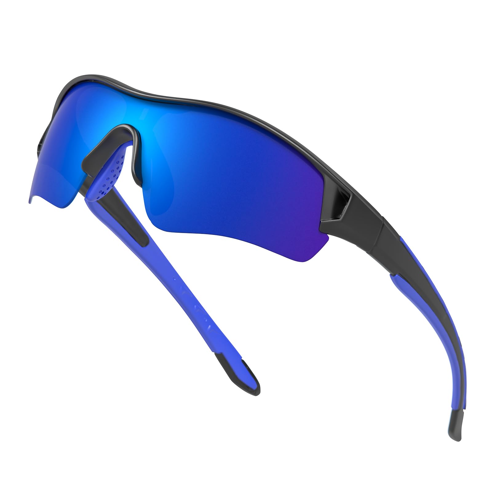 [BEACOOL] スポーツサングラス 偏光レンズ 野球 ランニング 自転車 登山 釣り ドライブ ゴルフ バイク テニス スキー メンズ レディース 超軽量 TR90 TAC UV400 紫外線防止 ユニセックス サングラス 安全 清晰 ブラック&ブルー
