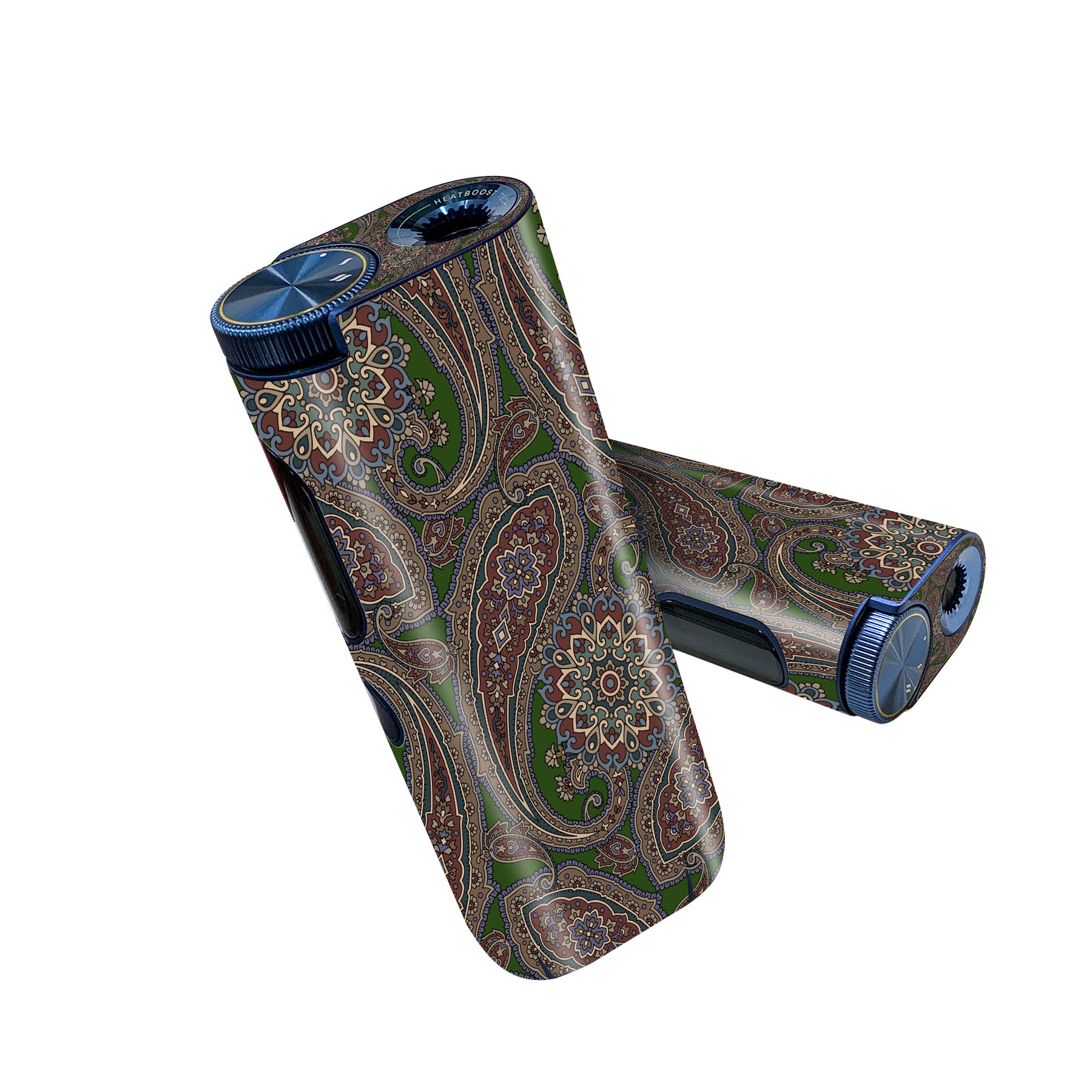 glo hyper pro 用 デザインスキンシール 側面2枚 天面3枚 セット 360°カバー ケース 保護 グロー ハイパー プロ グロウ ステッカー デコ アクセサリー 012393 ペイズリー 緑 レトロ