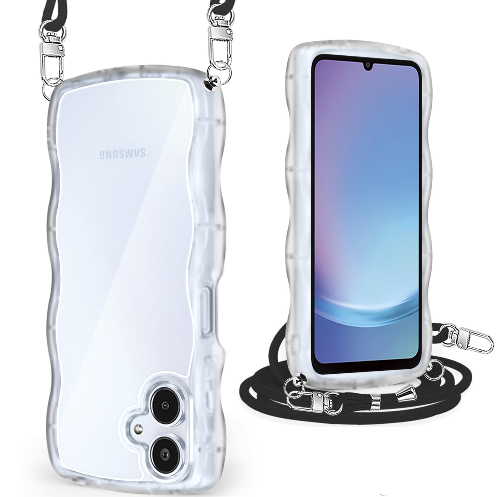Galaxy A25 5G ケース/SC-53F ケース クリア ショルダー ギャラクシー A25 5G カバー うねうね 透明 人気 かわいい 耐衝撃 スマホケース ストラップ付き 取り外し可能 長さ調整可能 首かけ 肩掛け 薄型 軽量 TPU ワイヤレ