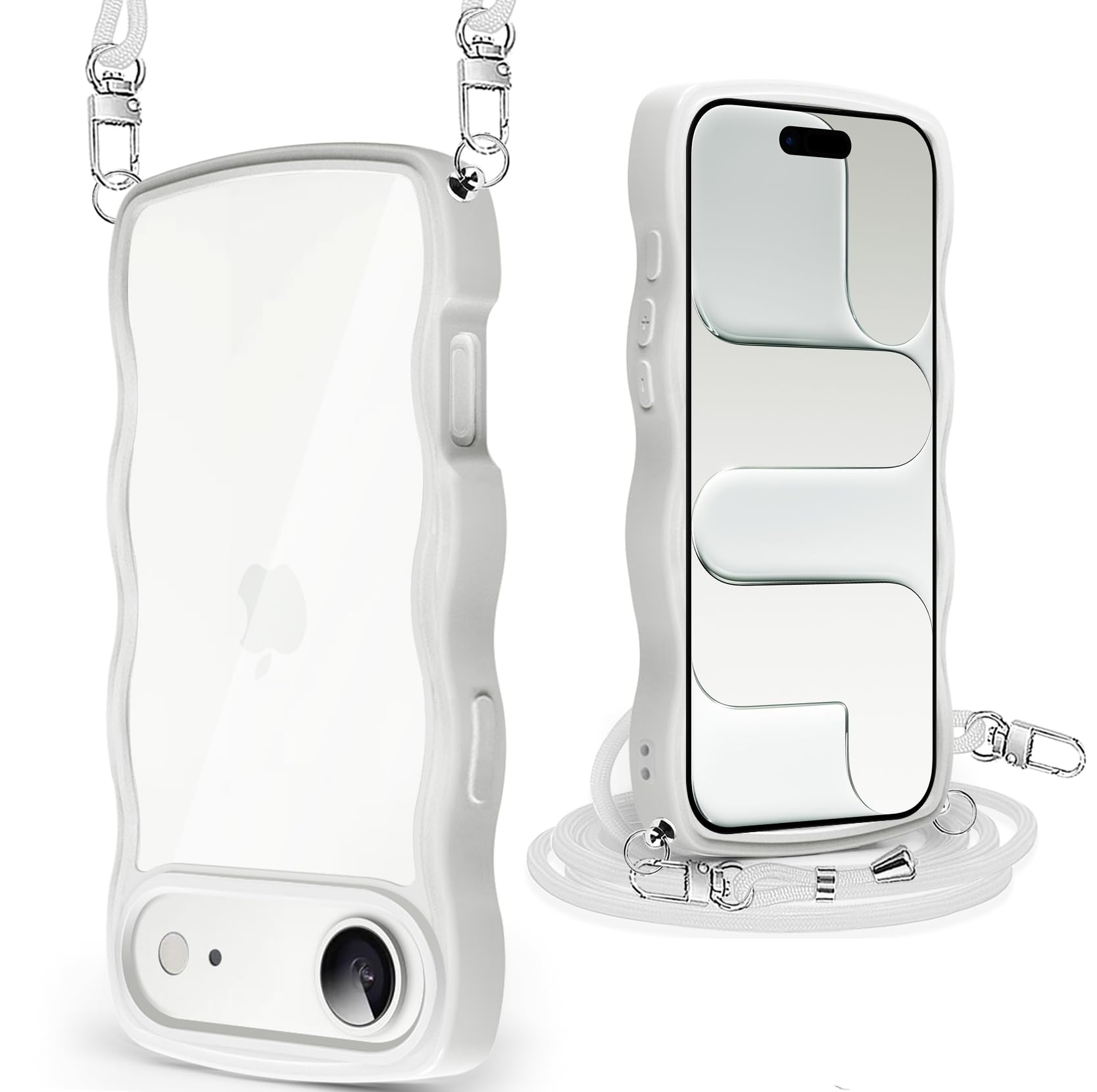 iPhone 17 Air 用 ケース クリア ショルダー アイフォン 17 Air 用 カバー うねうね 透明 人気 かわいい 耐衝撃 スマホケース ストラップ付き 取り外し可能 長さ調整可能 首かけ 肩掛け 薄型 軽量 TPU ワイヤレス充電対応(ホワ
