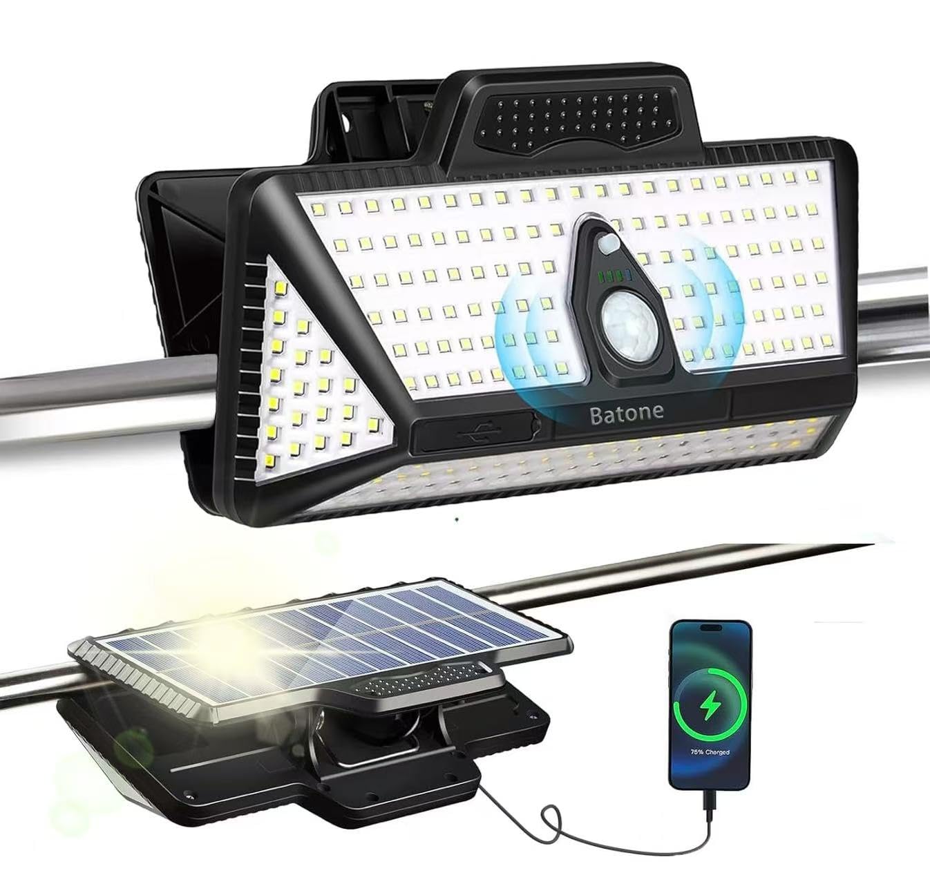Batoneクリップ式 センサーライトソーラー ランタン6000mAH TYPE-C充電 屋外 防水 屋外 ソーラー 人感防犯ライト キャンプ用品 吊り下げ み式 防災 停電 節電対策 超高輝度