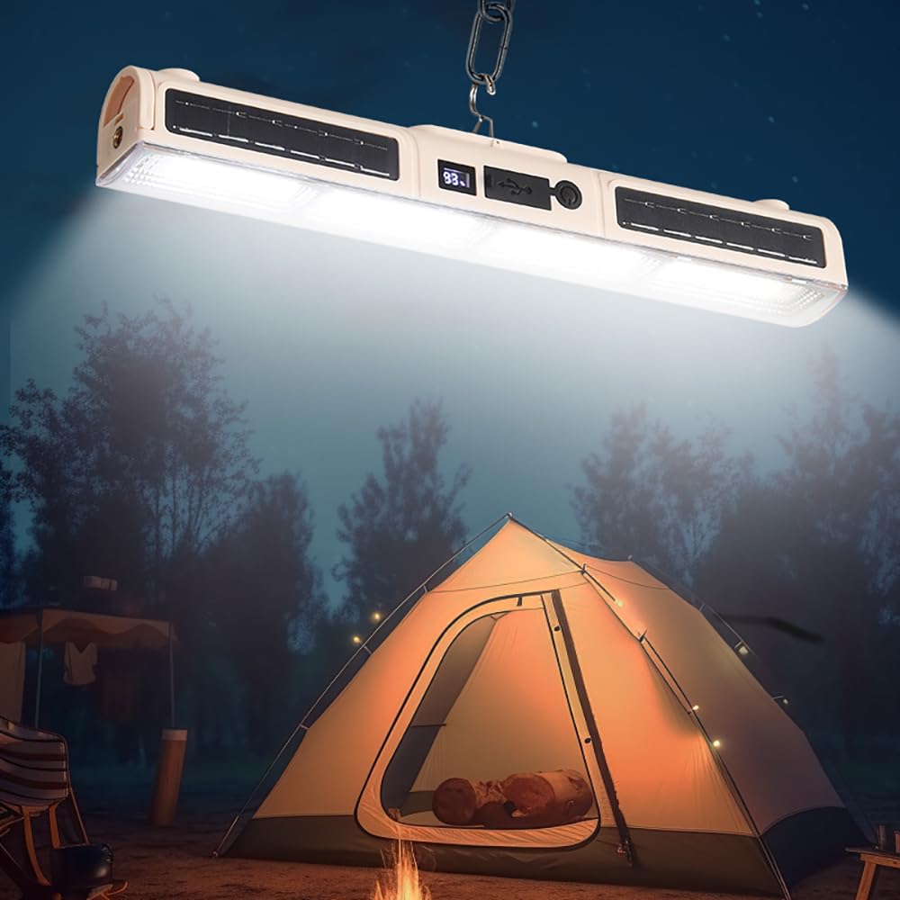・【キャンプランタン】作業灯は超大容量バッテリーを内蔵します。モードによると7時間から15時間以上長時間駆動が可能で、キャンプや釣り、スポーツなど多くのシーンで活躍が期待できます。パッケージ内に充電ケーブル付き、場所を決めて充電する必要はありません。充電器、パソコン、一般的なアダプタでいつでもどこでも充電できます。・【高輝度LEDランタン】 超高輝度ledランタンは168個高品質SMDチップが搭載しています。本キャンプランタンはモード切替ボタンを押すと(1)昼白色(2)電球色(3)100%自然色(4)50%自然色(5)(SOS)赤、青点滅モードをたんたん切り替えて、様々な使用シーンにお応えします。・【大容量充電式LEDランタン】 LEDランタン 充電式は大容量電池内蔵されますが,コンパクトで軽いです。充電機能付き、従来品2倍の充電効率で、充電時間を半分に短縮します。またバッテリー残量ランプが搭載されます。バッテリー残量と蓄電状況が分かりやすくなります。電池式作業灯 7-15時間稼働できます。・【ソーラー充電/Type-c充電】キャンプランタン led 充電式 2つの充電モード、ポリシリコンソーラー充電パネル、屋外に電力がない場合、緊急ソーラー充電を使用できます。 Type-c 高速充電で、5V2A充電アダプターを使用すると、完全に充電するのにわずか 6時間かかります。7 ~ 15時間働き続けることができるので、災害や地震後のサバイバルツールとして使うことができます。・【IP66防水&SOS信号】IP66防水防塵仕様で、影響を与えないように処理しました、雨や雪にさらされても大丈夫です。緊急な時、赤青点滅モードをSOS信号灯として利用でき、どこでも携帯できる役立つなライトです。テント内の照明、夜釣り、バーベキュー、車中泊、日常使用、常備灯、地震対策、停電、アウトドア、キャンプライト、登山、防犯 、散歩、非常時などに大活躍です。注意:LED作業灯は防塵防水仕様で屋内外問わず使えるライトで突然の悪天候にも対応できます。ご注意:本製品は防水仕様ですが、雨水が製品内部に浸入して内部部品を損傷し、耐用年数に影響することを避けるため、長時間雨水にさらさないでください。この製品は水に浸すことはできませんのでご注意ください。