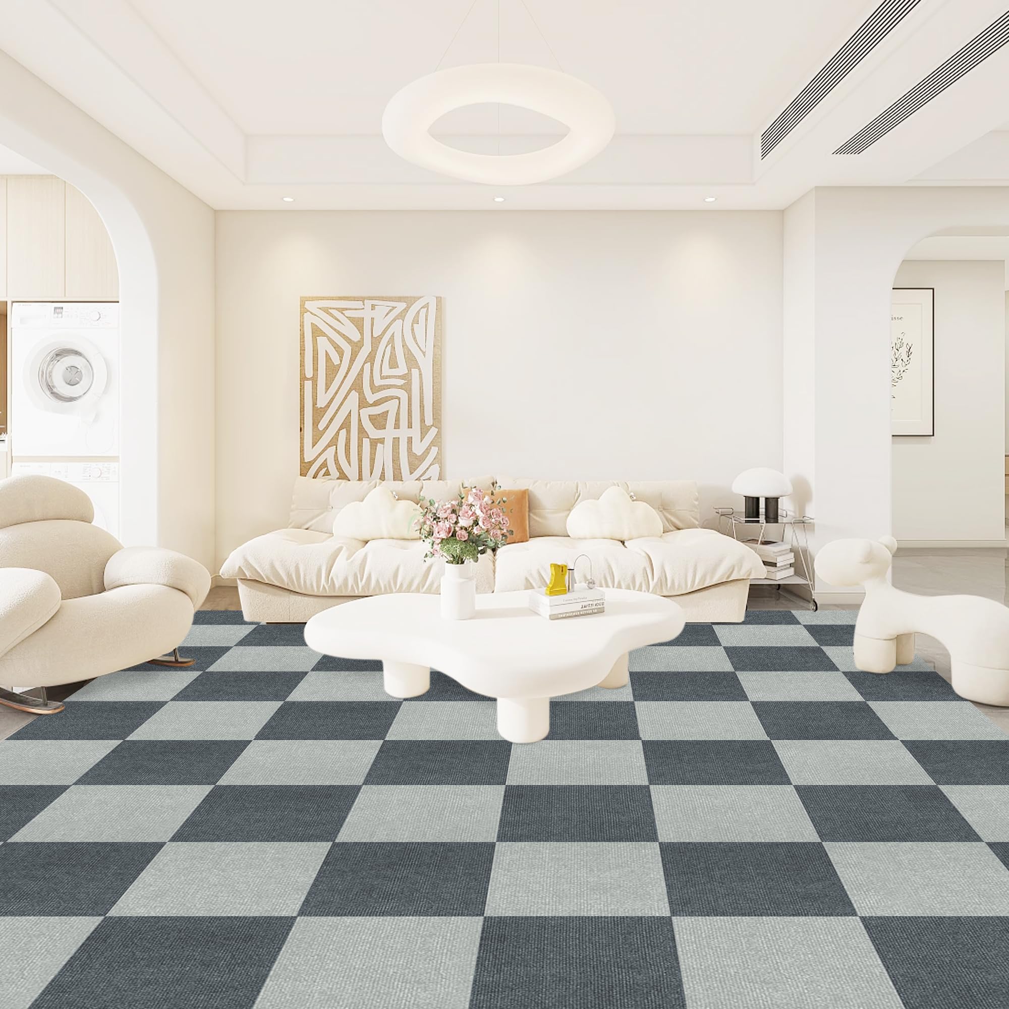 QQpony タイルカーペット ジョイントマット 吸着マット 45×45cm 大判 40枚セット 滑り止め 床暖房対応 洗濯機OK&ハサミでカット自由 赤ちゃん・高齢者・ペットに最適 ズレない吸着設計・床保護 玄関・リビング・事務所対応【ライトグレー+ダー