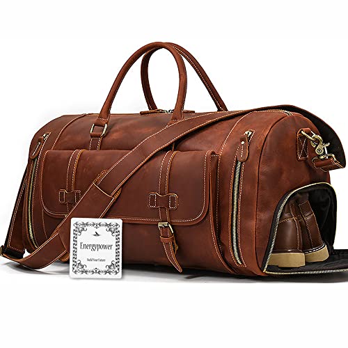 EnergyPower 40L 大容量 天然牛革 ボストンバッグ クレイジーホースレザー使用 3泊-5泊 肩がけOKの2WAY仕様 シューズポケット メンズ 40リットル 牛革 ハンドクラフト 本革 ビッグサイズ 大型 レザー ダッフルバッグ スポーツバッ