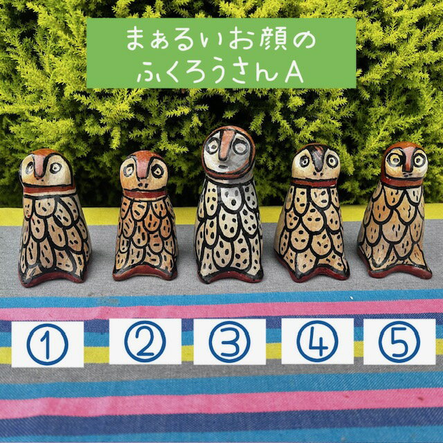 【フェアトレード】まぁるいお顔のふくろうさん達 A組 Fadria チュニジア セジュナン村の土器 女性たちの手仕事民芸品 世界遺産 土器 置物 焼き物 expo2025