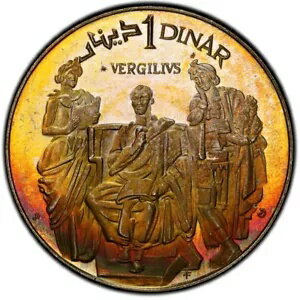 PR66DCAM 1969-FM チュニジア 1 ディナール シルバー プルーフ、PCGS Trueview- レインボー トーン