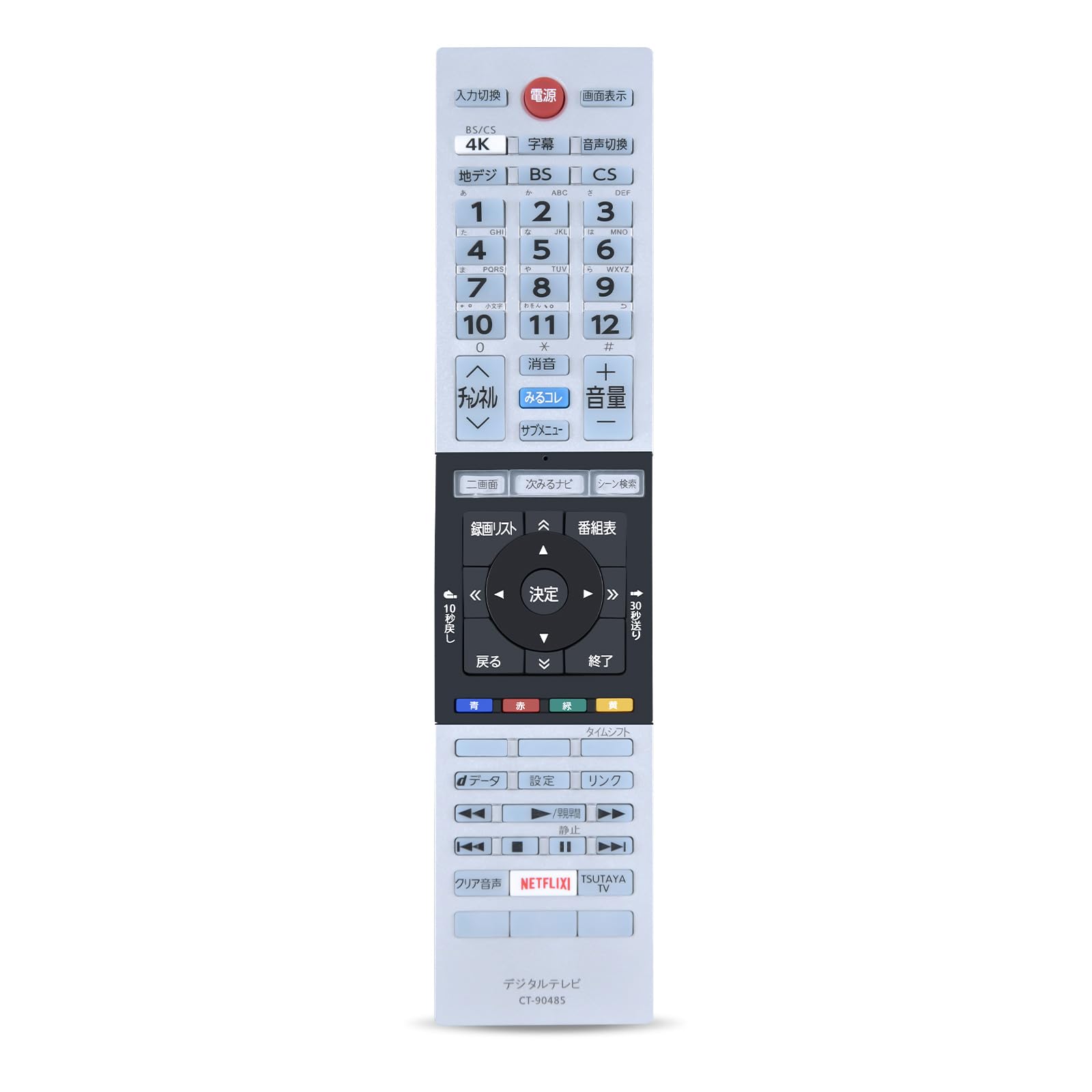 ・・【シンプル用リモコン】本製品は、東芝製リモコンの紛失、応答不能(故障)、その他の故障の代替品、代替品、予備品としてご利用いただけます。 電池と説明書は付属しません。 リモコンの設定方法については、テレビのマニュアルを参照するか、製造元にお問い合わせください。・・【適用機種】東芝レグザリモコン regzaリモコン 東芝テレビリモコン55J10X 49J10X 43J10X対応。・・【対応リモコン機種】この東芝テレビリモコンは、「東芝レグザテレビリモコン CT-90463」の交換用リモコンです。 純正リモコンとほぼ同じボタン配置で搭載されており、リモコンの主な機能をすべてご利用いただけます。・・【操作簡単】一般的に使用されるテレビの基本機能を搭載し、操作しやすい大きなボタンを採用し、ボタンの上に文字がはっきりと配置されているため、目の疲れを軽減し、快適に操作できます。置いても押しやすく、安定感があります。置いたままつまんだり握ったり操作することができます。 ※機種によっては一部ご利用いただけない機能がございます。・・【重要な注意事項】このテレビリモコンは「汎用リモコン」ではなく、レグザテレビリモコン東芝 CT-90463 (リモコン Regzaシリーズ) の代替品としてのみ使用できることにご注意ください。上記のテレビのみ互換性があります。・・【シンプル用リモコン】本製品は、東芝製リモコンの紛失、応答不能(故障)、その他の故障の代替品、代替品、予備品としてご利用いただけます。 電池と説明書は付属しません。 リモコンの設定方法については、テレビのマニュアルを参照するか、製造元にお問い合わせください。・・【適用機種】東芝レグザリモコン regzaリモコン 東芝テレビリモコン55J10X 49J10X 43J10X対応。・・【対応リモコン機種】この東芝テレビリモコンは、「東芝レグザテレビリモコン CT-90463」の交換用リモコンです。 純正リモコンとほぼ同じボタン配置で搭載されており、リモコンの主な機能をすべてご利用いただけます。・・【操作簡単】一般的に使用されるテレビの基本機能を搭載し、操作しやすい大きなボタンを採用し、ボタンの上に文字がはっきりと配置されているため、目の疲れを軽減し、快適に操作できます。置いても押しやすく、安定感があります。置いたままつまんだり握ったり操作することができます。 ※機種によっては一部ご利用いただけない機能がございます。・・【重要な注意事項】このテレビリモコンは「汎用リモコン」ではなく、レグザテレビリモコン東芝 CT-90463 (リモコン Regzaシリーズ) の代替品としてのみ使用できることにご注意ください。上記のテレビのみ互換性があります。