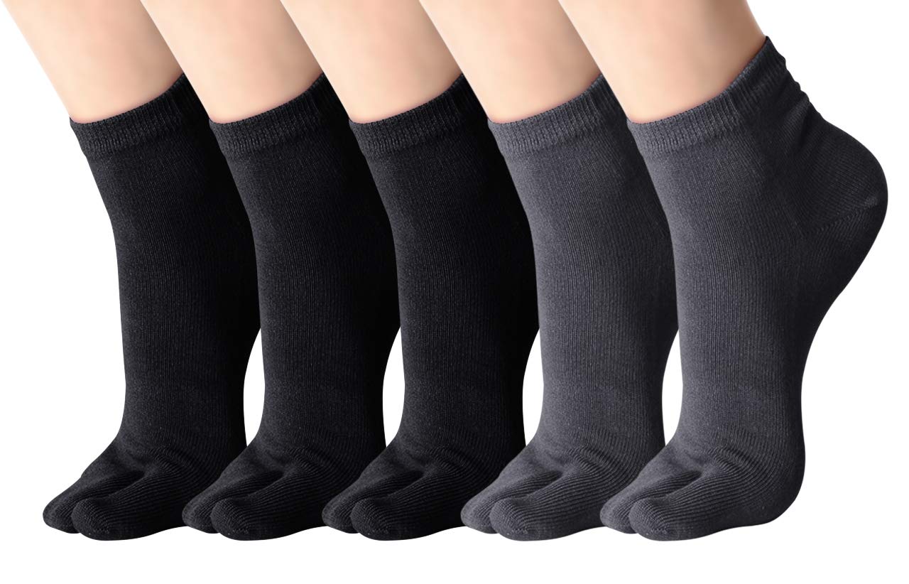 [Euyqs] 2本指ソックス ソックス ショートソックス スポーツソックス くるぶし 通気防臭 5ペアパック (ブラック+ディープグレー, 39-42)