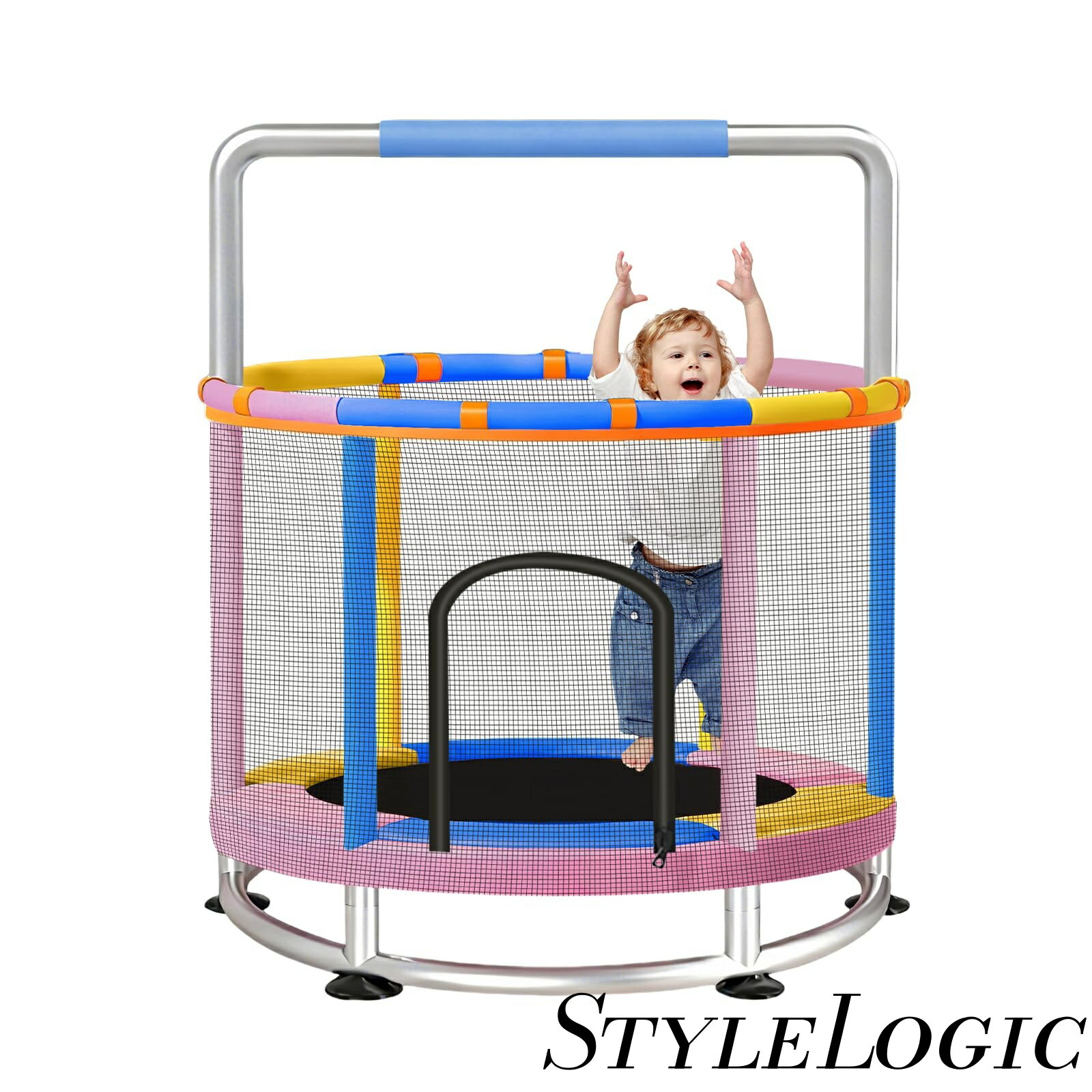 【まとめ買いで最大1000円OFFクーポン!】【送料無料】子供 室内 大人用 家庭用 直径140cm(55inch) 折りたたみ 安全保護ネット付き 手すり付き 3段階調節 静音設計 全鋼構造 高さ調節可能 高弾力 トレーニング エクササイズ 遊び 耐荷重150kg 組み立て簡単 子供のプレゼント