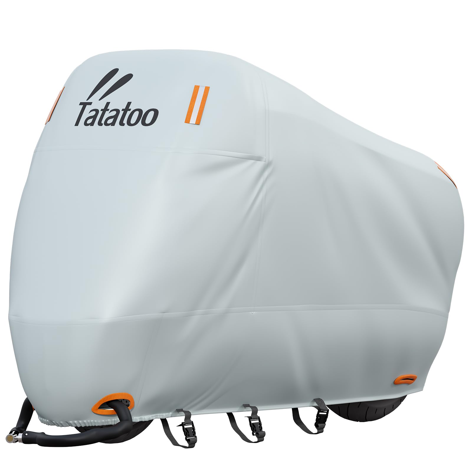 Tatatoo バイクカバー 厚手 125/250cc用 400cc対応 大型 原付 防水 耐熱 【2025年新版】紫外線防止 UVカット 防風 防埃 防雨 防雪 盗難防止ロック穴 反射テープ付き ワンタッチバックル 収納バッグ付き(XXXL)