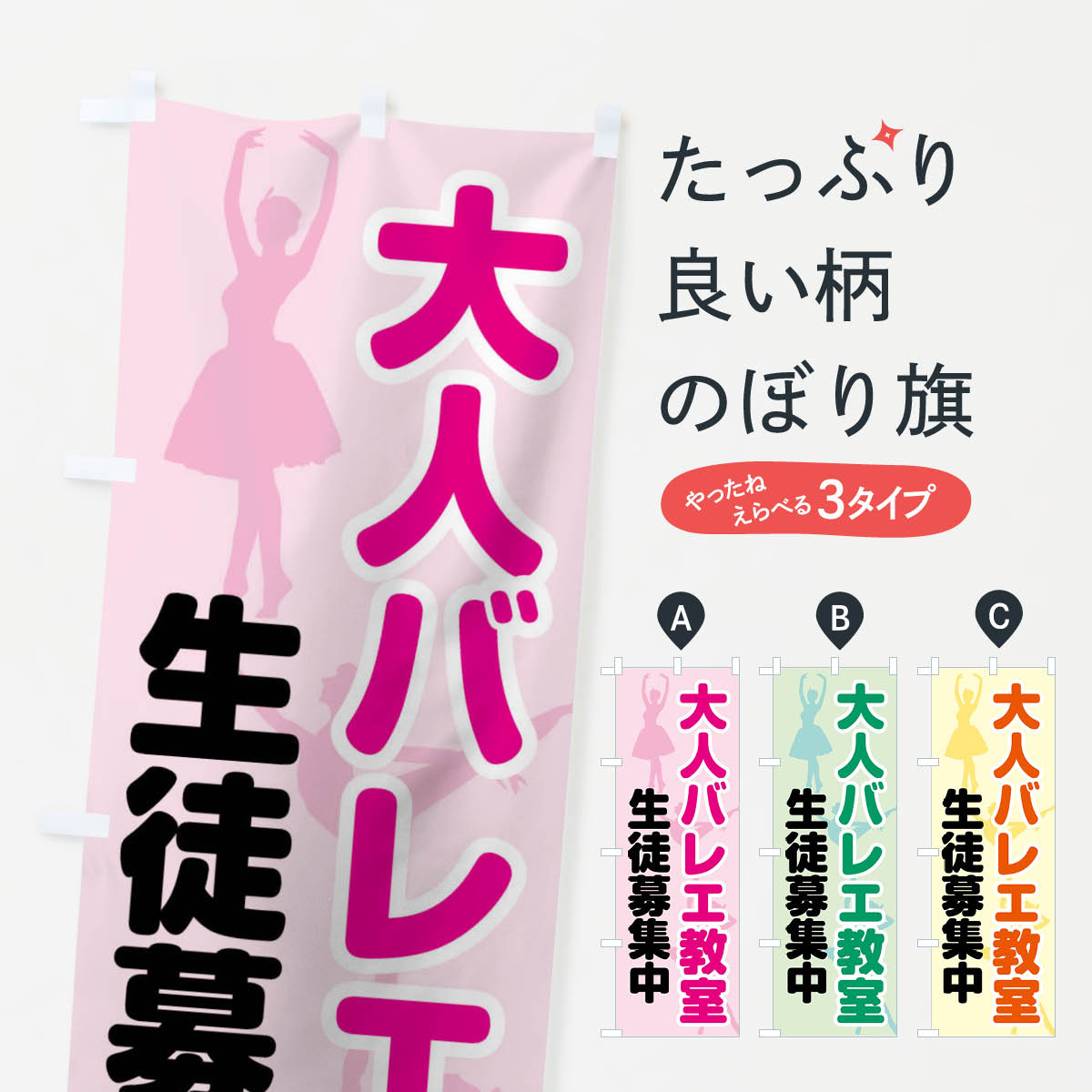 【ネコポス送料360】 のぼり旗 バレエ教室のぼり 1JGP 生徒募集中 習い事 グッズプロ 【名入れできます+1017円】
