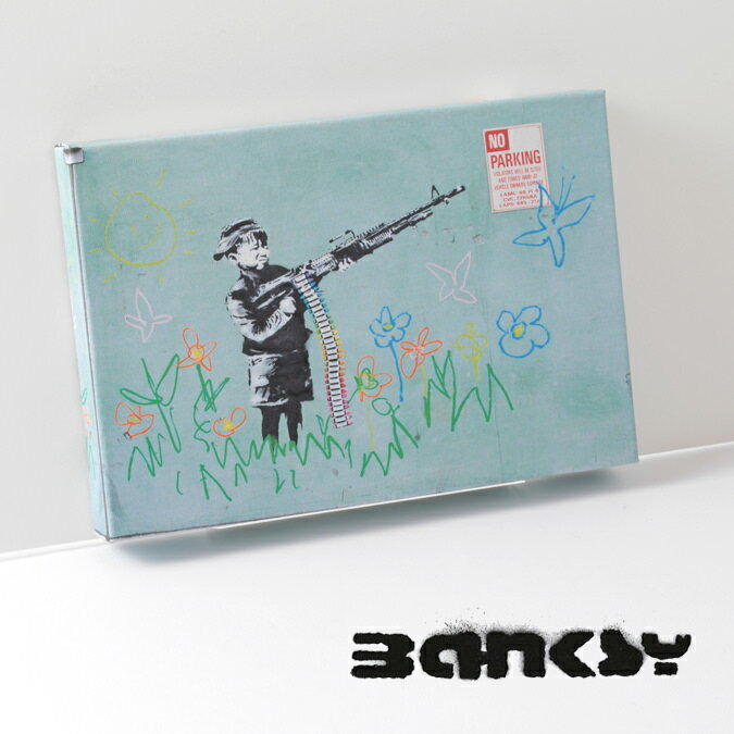 BANKSY CANVAS ART クレヨン マシンガン キャンバス アートファブリックパネル スモール "Boy With Crayon Machinegun" 31.5cm × 21cm バンクシー アート ギフト