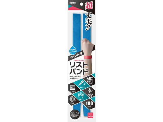 【仕様】抜群の強度・耐久性能を保持し、激しく動き回るコンサートなどでも安心。耐水性能に優れており、海やプールでも使用できます。。一度外すと再装着不可能ですので不正入場などの防止に役立ちます。●カラー:青●サイズ:255×20mm●材質:PE(不織布)●注文単位:1袋(100本)【備考】※メーカーの都合により、パッケージ・仕様等は予告なく変更になる場合がございます。【検索用キーワード】そにっく SONIC いべんとようりすとばんど WRISTBAND 1袋 100本 入場管理 グループ分け コンサート 海 プール スパ スポーツ大会 街コン フェス 不正防止 耐水 腕章 NF−3567B NF3567B タイベック製 日本製 あお アオ ブルー 使い切り つかいすて RPUP_02 R27885イベントの入場管理・グループ分けの必須アイテム!