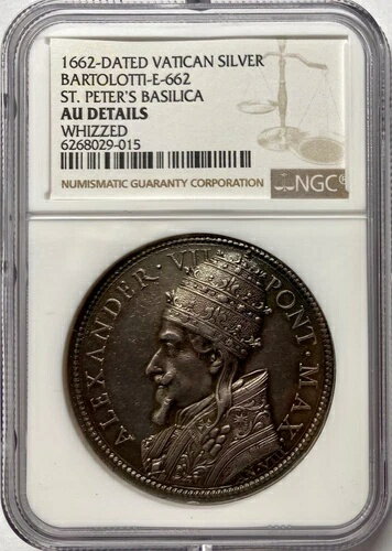 1662年製 バチカン銀貨 Bartolotti-E-662 サン・ピエトロ大聖堂 NGC AU 詳細