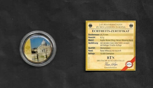 2ユーロ特別コイン バチカン 2014年、サン・ピエトロ大聖堂、カラーコイン、銀行発行新品、非常に希少 -