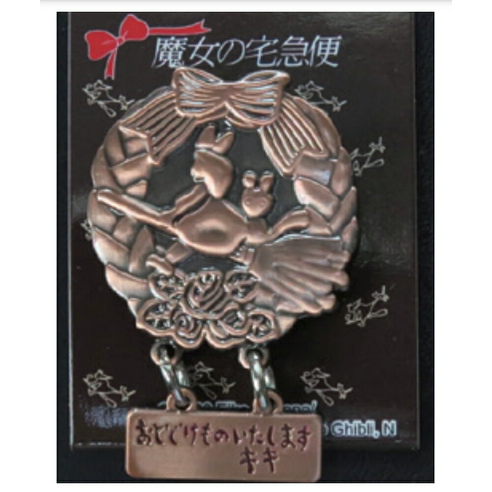 メーカー:清泉 サイズ:約25×38mm 魔女の宅急便のキキの看板のピンバッジです。 バッグや洋服のワンポイントに♪ ブロンズカラーがレトロで可愛いです♪