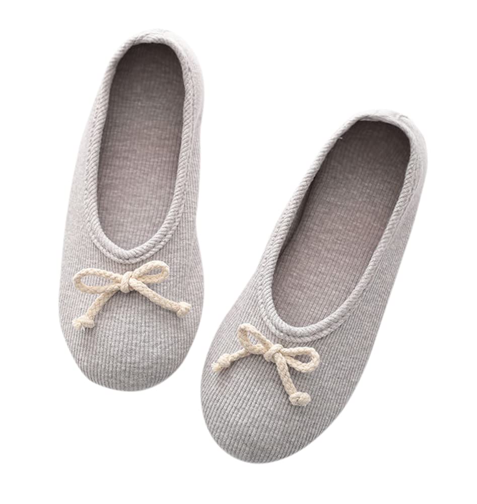 [Euyqs] 室内ばき 介護用シューズ 妊娠 足が腫れ お年寄りシューズ 滑り止め コットンスリッパ (グレー/ちょう結び, small)