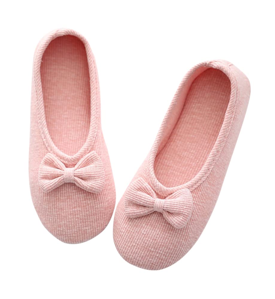 [Euyqs] 室内ばき 介護用シューズ 妊娠 足が腫れ お年寄りシューズ 滑り止め コットンスリッパ (ピンク/ちょう結び, small)