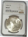 プリスティン 1924 ピース シルバー 1 ドル コイン NGC ミント ステート 67PRISTINE 1924 PEACE SILVER $1 DOLLAR COIN NGC MINT STATE 67