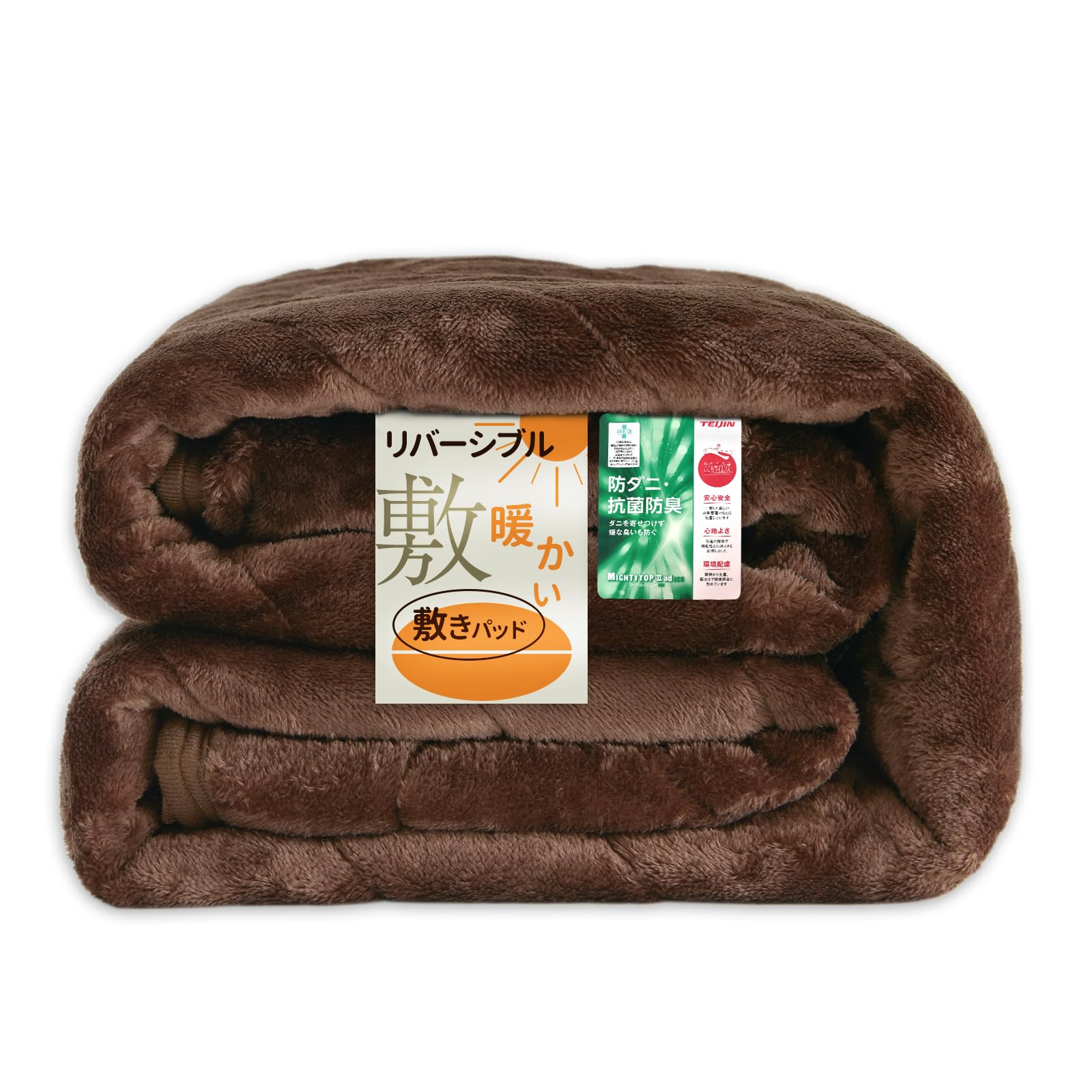 Matdeco 敷きパッド セミダブル フランネル 洗える リバーシブル 春秋冬【TEIJIN マイティトップ中綿使用】あったか ベッドシーツ 吸湿 発熱 蓄熱わた使用 しきぱっと 静電気防止加工 寒さ対策 防ダニ 抗菌防臭 120×200cm ブラウン