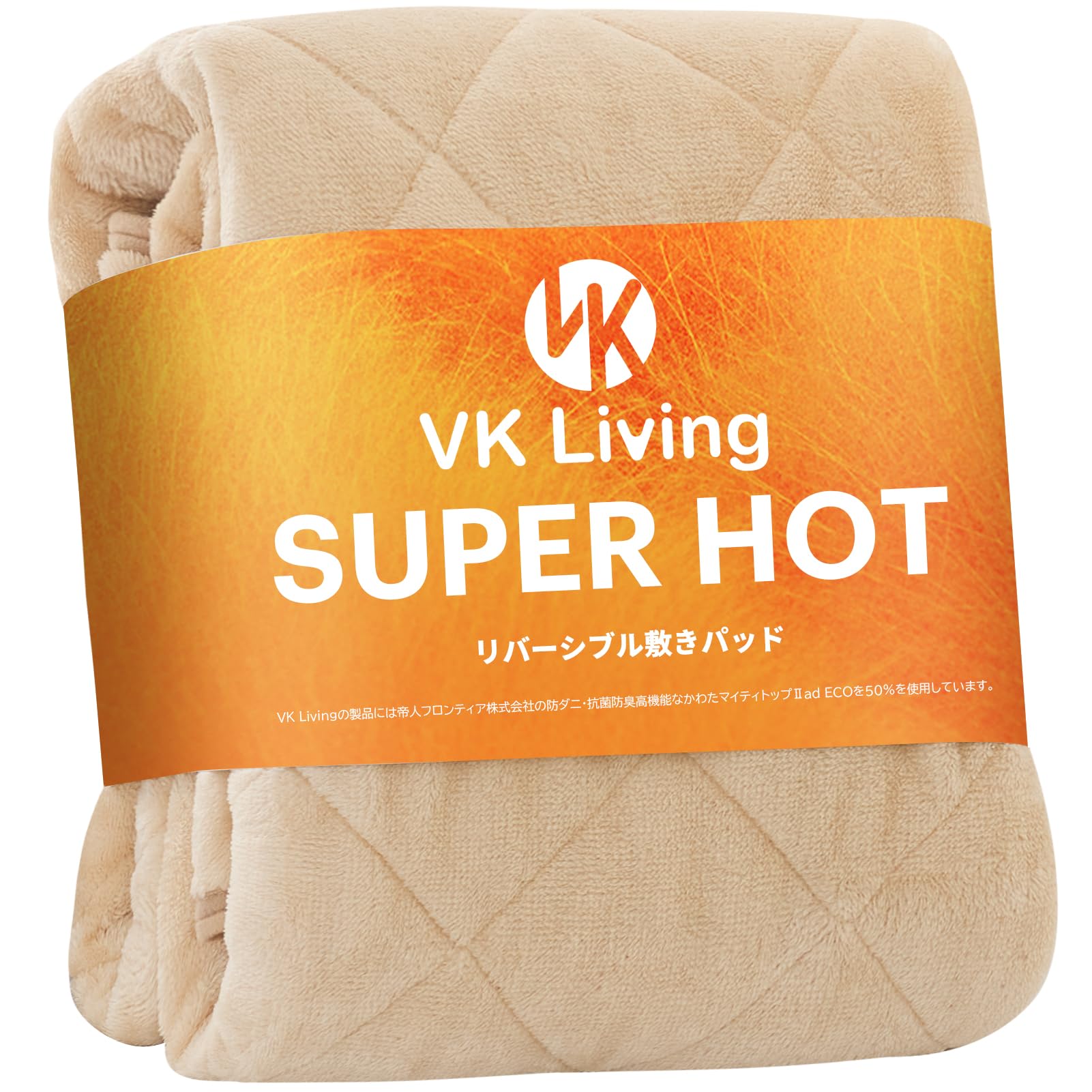 VK Living 敷きパッド セミダブル リバーシブル 冬 【SUPER HOT】 シーツ TEIJIN抗菌防臭 あったか ベッドシーツ フランネル しきぱっと オールシーズンで使える 静電気防止加工 洗える 防ダニ 120×200cm ベージュ