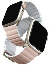 UNIQ Apple Watch バンド 42mm 41mm 40mm Series 10/9/8/7/6/SE/5/4/対応 マグネットシリコンバンド リバーシブル アップルウォッチ ベルト REVIX (ピンクベージュ/ホワイト, レザーモデル42mm