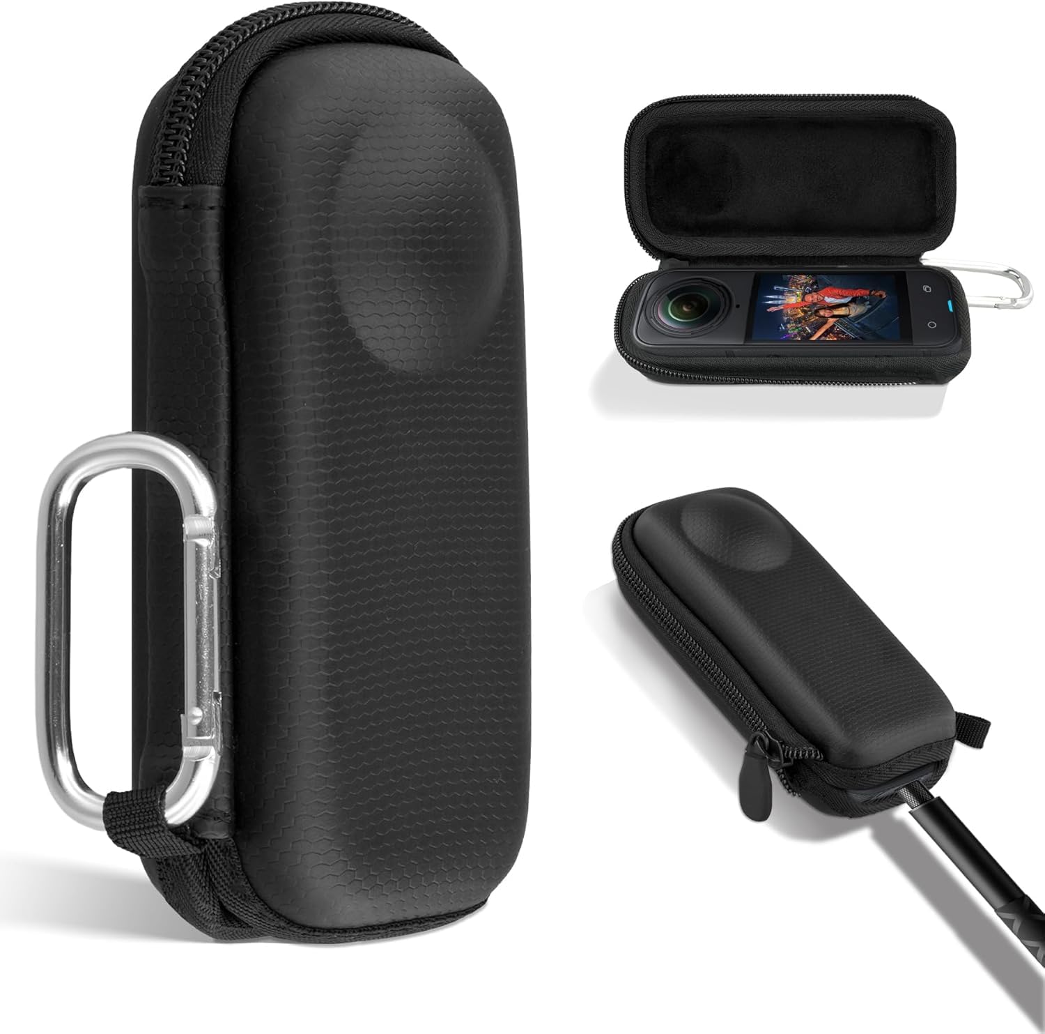 (ケースのみ)Insta360 X5/X4/Insta360 ONE X2 アクションカメラ用防水ミニ収納ケース(オリジナルレンズキャップ用) インスタ360 X5/4 ハード専用保護 PU Case 防塵防滴ポータブル カラビナ付き-Khanka
