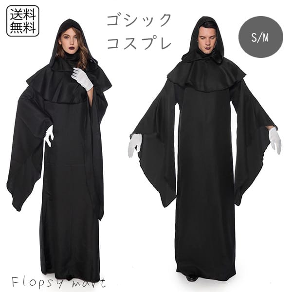 予約 コスプレ服 悪魔衣装 男女兼用 ユニセックス コスチューム ハロウィン 仮装 黒無地 黒子 シンプル ペアコーデ可能 大人用 フード付き 吸血鬼 ヴァンパイア ホラー 小悪魔 魔界風 魔法使い風 ゴシック風 体型カバー
