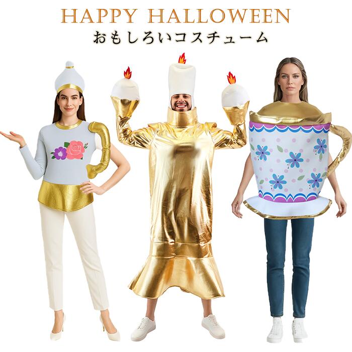 【5日限定10%OFFクーポン】ハロウィン コスプレ 衣装 ティーポット ティーカップ キャンドル コスチューム 面白い ウケる 爆笑 大人用 男女兼用 ユニセックス レディース メンズ 3人組 お揃い ペア カップル パーティー イベント 忘年会 余興 結婚式 二次会 文化祭 学園祭