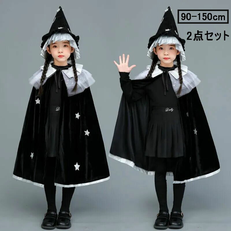 ハロウィン 衣装 子供 コスプレ 女の子 男の子 ポンチョ マント 魔女 コスプレ衣装 小悪魔 魔法使い 2点セット ハット ローブ ユニセックス 男女兼用 仮装 変装 コスチューム 帽子 子ども用 ウィッチ ワンピース 子供服 舞台服 演出 パーティー キッズ 子供コスプレ服 cos