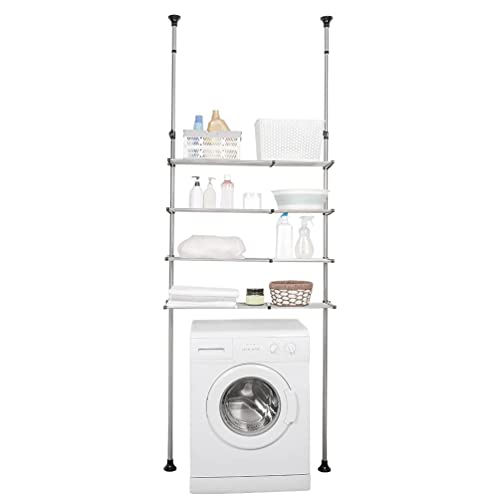 BAOYOUNI つっぱり棚 洗濯機ラック ランドリーラック4段 突っ張り式ラック 収納ラック 横幅伸縮式 ランドリー収納 ステンレス 段差があっても設置できる 耐荷重20kg 簡単設置 省スペース (ホワイト)