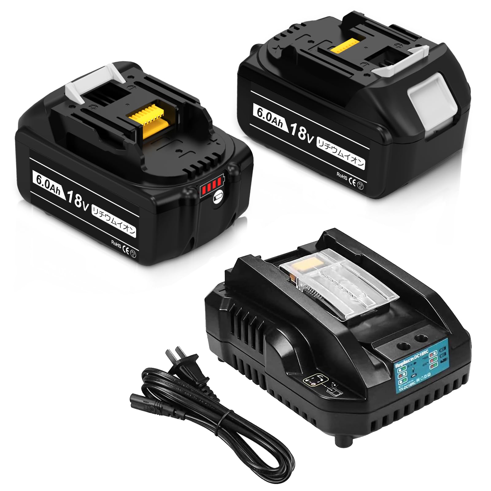 DOSCTT 互換 マキタ 18v バッテリー 6.0Ah(6000mAh) bl1860b 充電器セット【BL1860B二個+DC18RC充電器セット】 リチウムイオン バッテ リー 電動工具 18v バッテリー 互換 b l1860b bl1830b