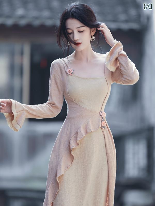 ドレス 大人 フェアリー 上品 シンプル 華やか きれいめ パーティ ウェディング セレモニー レディース 漢服 チャイナテイスト 秋