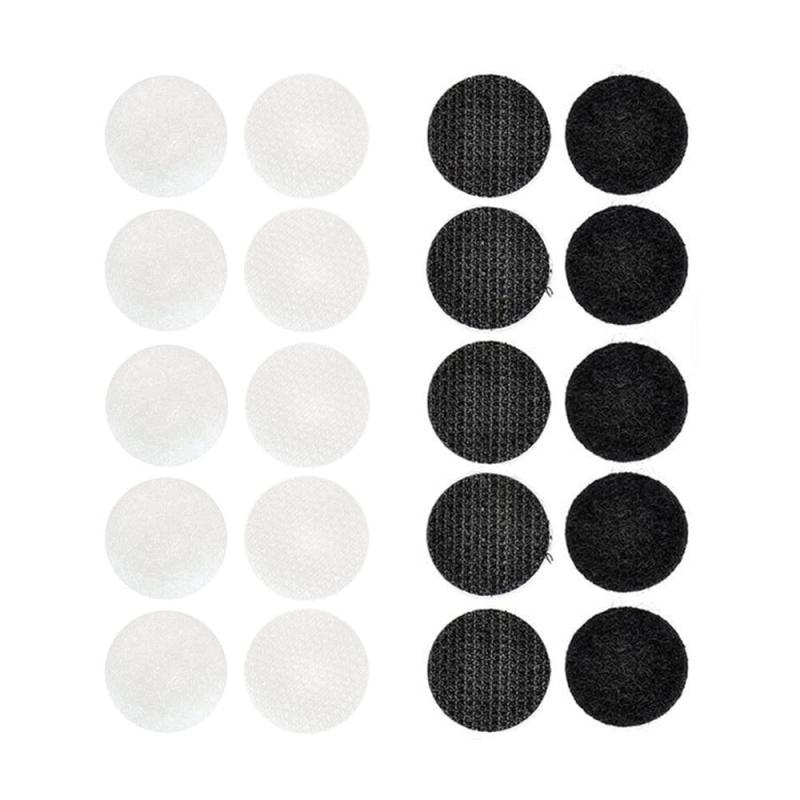 丸型 面ファスナー 両面テープ付き マジック付きテープ マジック シール 粘着テープ 強力粘着 DIY 手芸 円形 オスメスセット 多用途 業務用 家庭用 固定用 20組入 (黒+白, 直径20mm)
